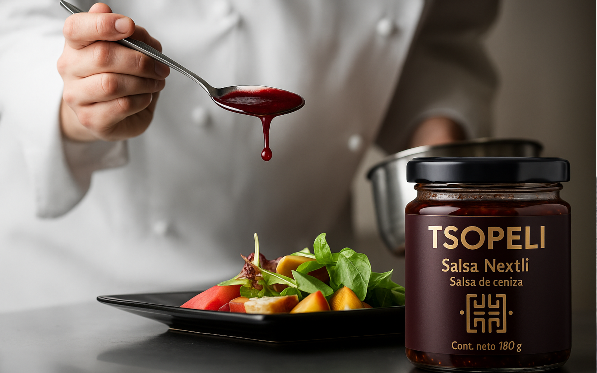 Salsa Artesanal de Cacao. Seducción en cada cucharada. Una delicia que honra el cacao mexicano en su forma más exquisita. Esta salsa combina cacao artesanal con toques de piloncillo, especias y un sutil amargor que despierta los sentidos. Perfecta para acompañar frutas, quesos, postres o incluso carnes, su sabor aterciopelado es puro placer. Tsopeli: lo dulce hecho arte.