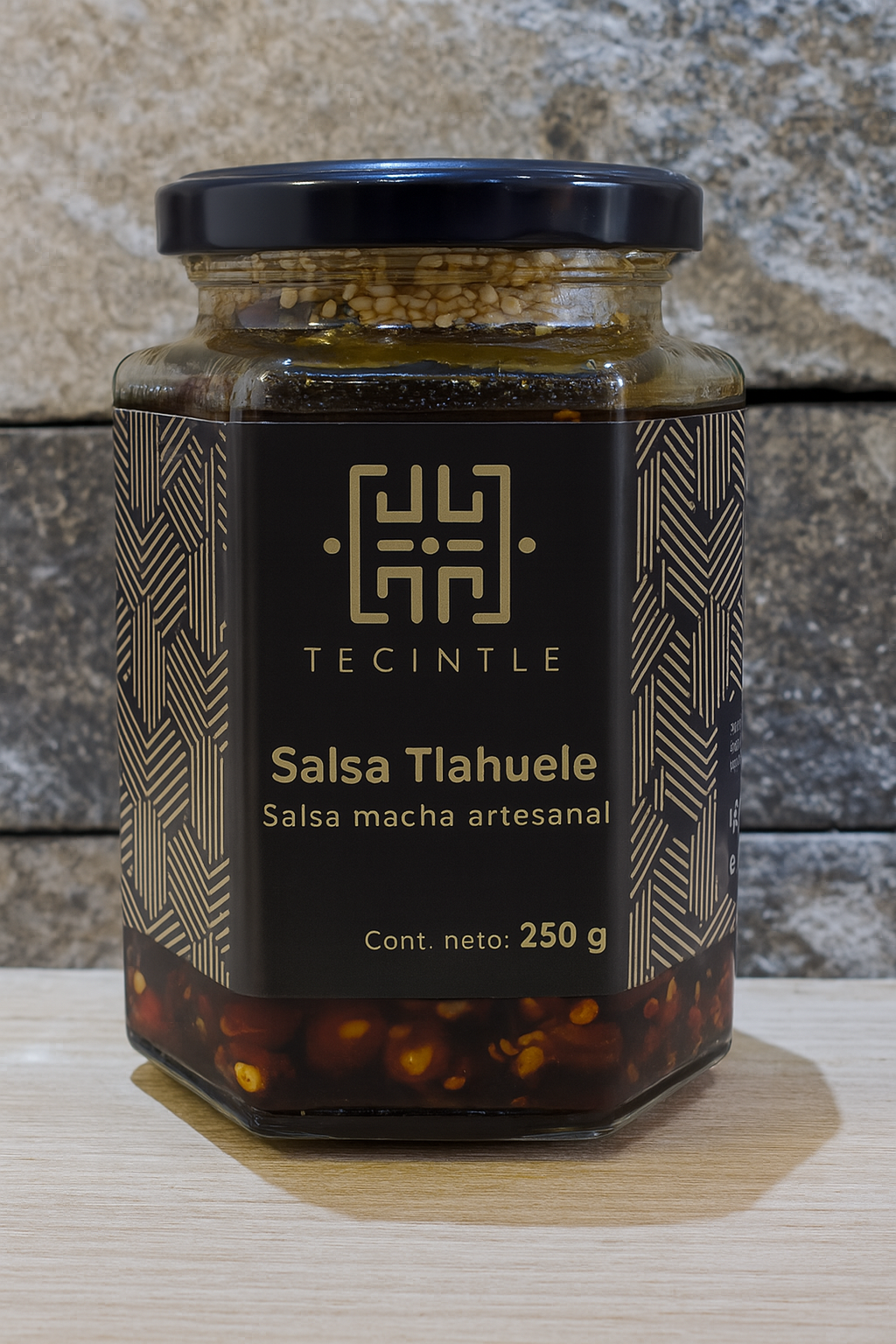 Salsa Artesanal de Chile Morita. Poder ancestral en cada gota. Con el sabor profundo del chile morita, el crujido del ajo dorado y el alma del aceite infusionado, la Salsa Macha Tlahuele es fuego y carácter. Hecha de manera artesanal, equilibra picor, textura y aroma con un toque ahumado que la hace única. Ideal para tacos, mariscos, quesos o simplemente sobre una tortilla caliente. Tlahuele: despierta tu espíritu con sabor.